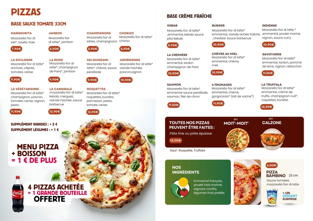 Base tomate ou crème, recettes classiques ou originales : il y en a pour tous les goûts. Des pizzas pensées pour surprendre, satisfaire et toujours vous régaler.